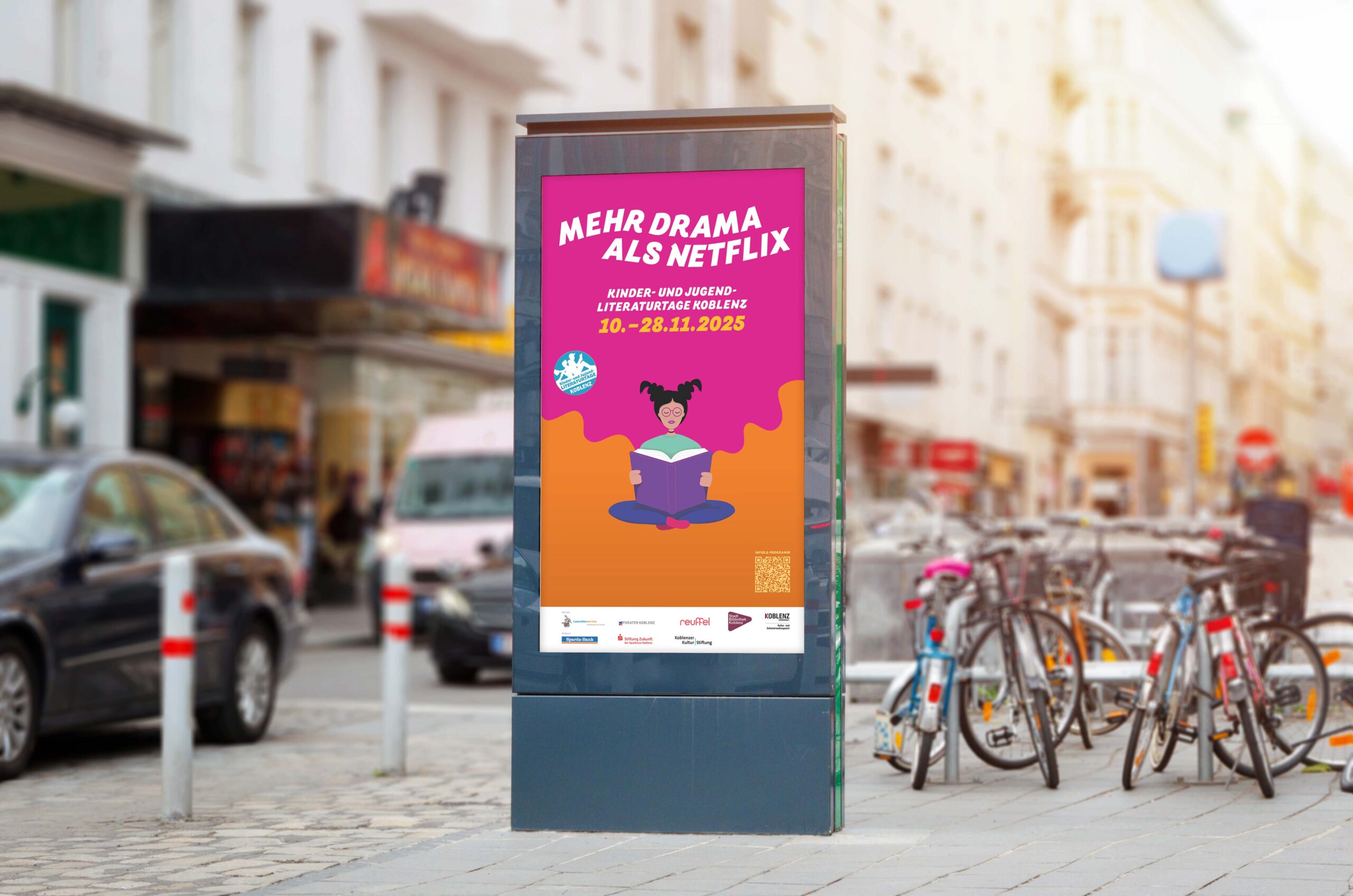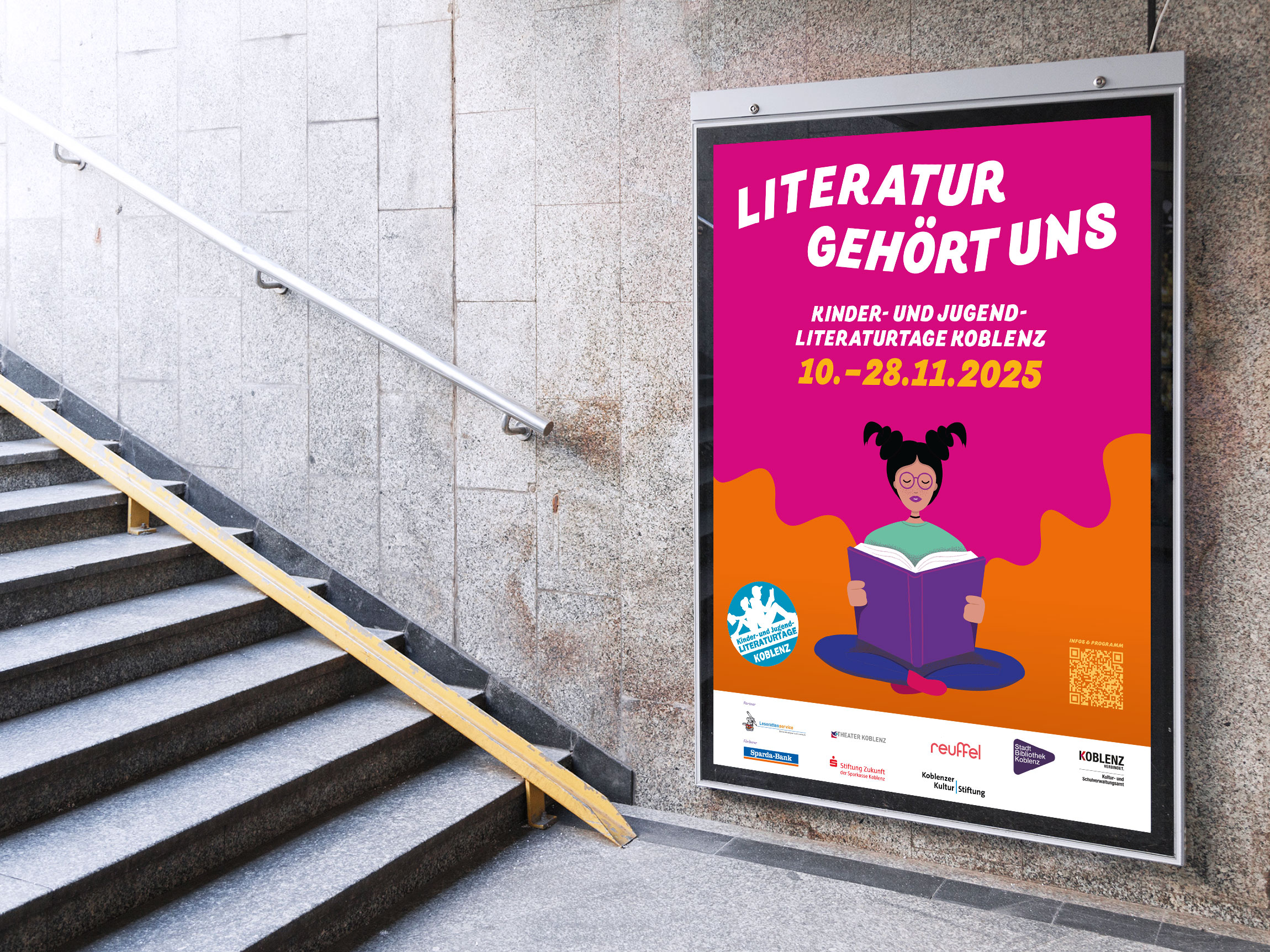 Citylight-Plakat für die Kinder- und Jugendliteraturtage Koblenz – Grafikdesign und Illustration Großflächenplakat für die Kinder- und Jugendliteraturtage Koblenz – Grafikdesign und Illustration Citylight Plakat für die Kinder- und Jugendliteraturtage Koblenz – Grafikdesign und Illustration